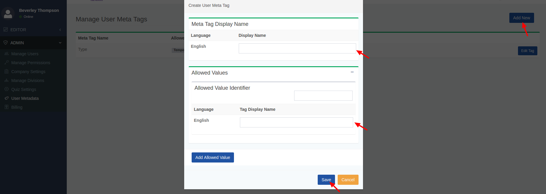 Meta tags are editable. Click on Edit Pop-up Window will appear Enter new name Save