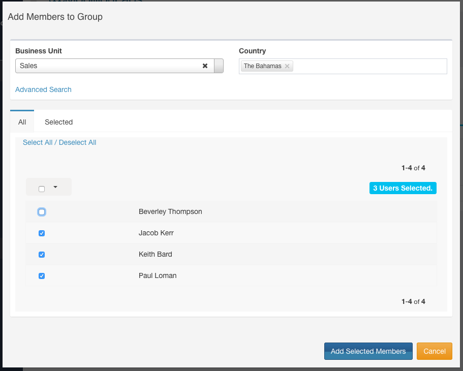 Now add members to this new group. You can select members through the Search/Advanced Search given in the selection screen. Once you have made the necessary selections, click on Add Selected Members button at the bottom of the screen.