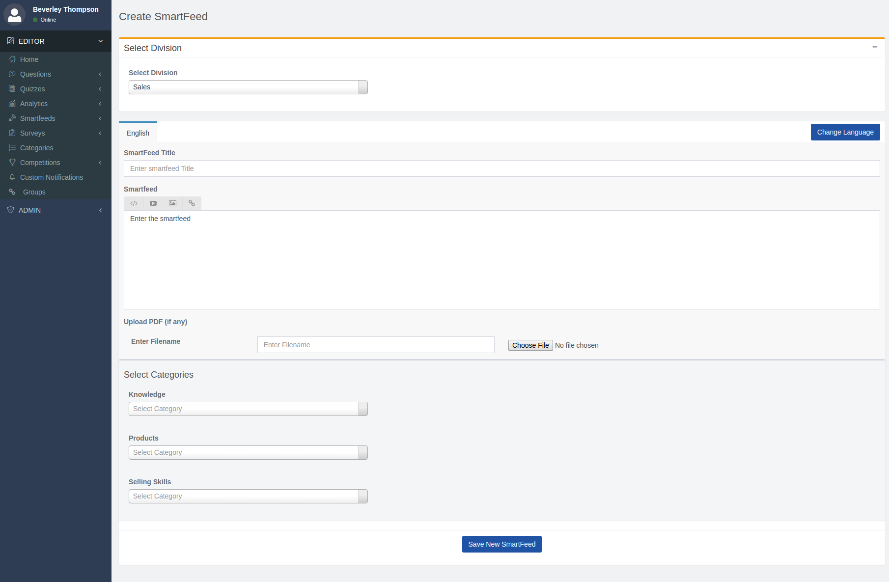 Create Smartfeed is to create article related to product or country. Go to Create New Smartfeed