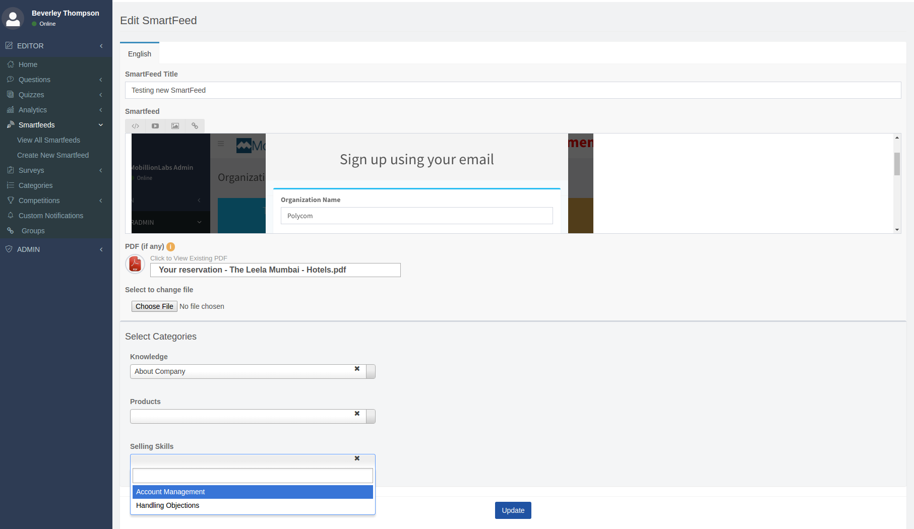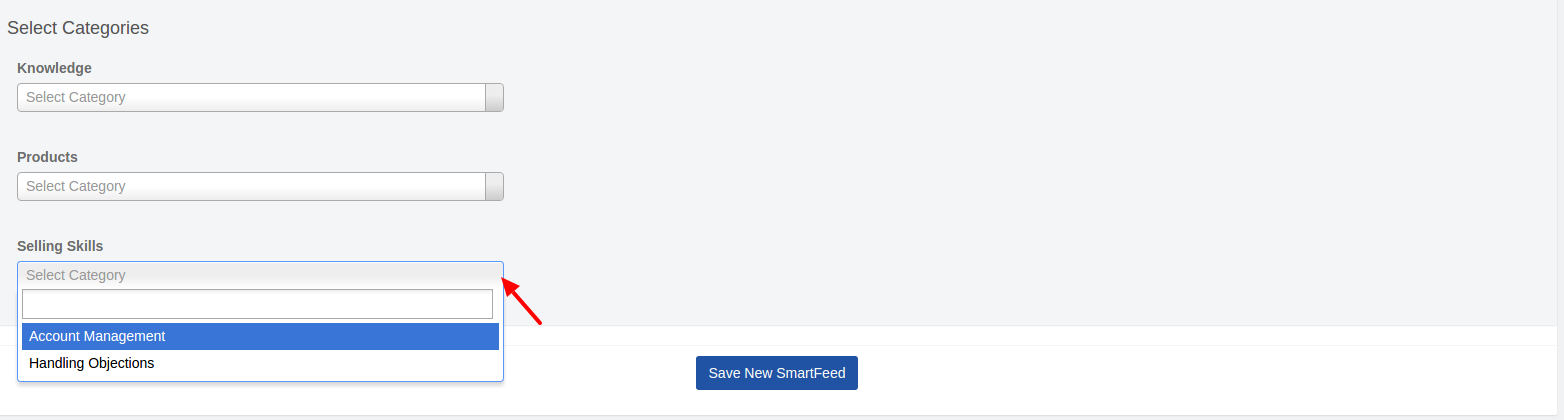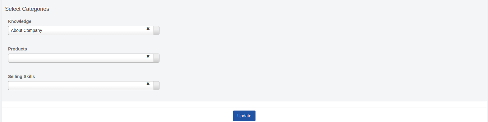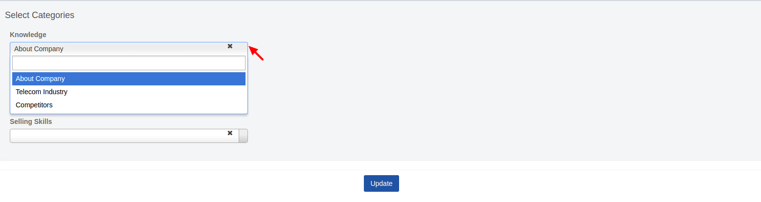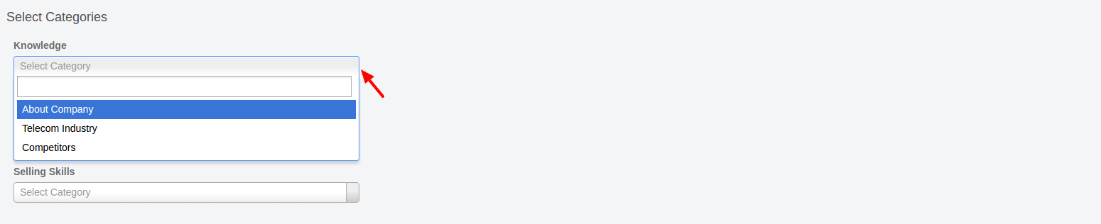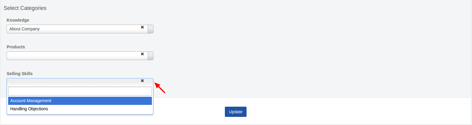 Select categories can be done by selecting Knowledge, Product and selling Skill.