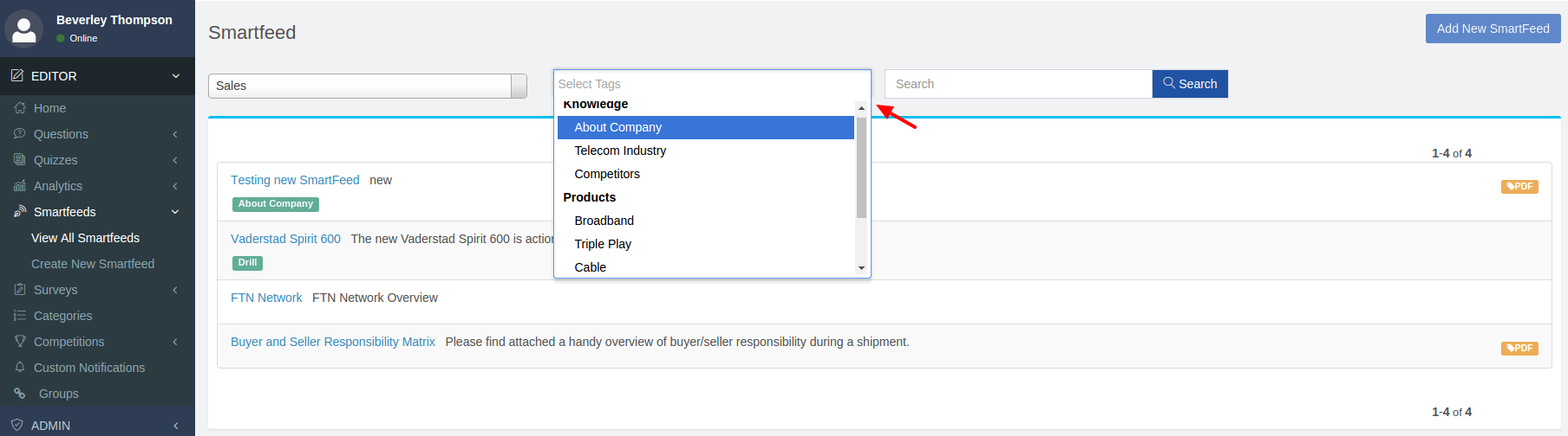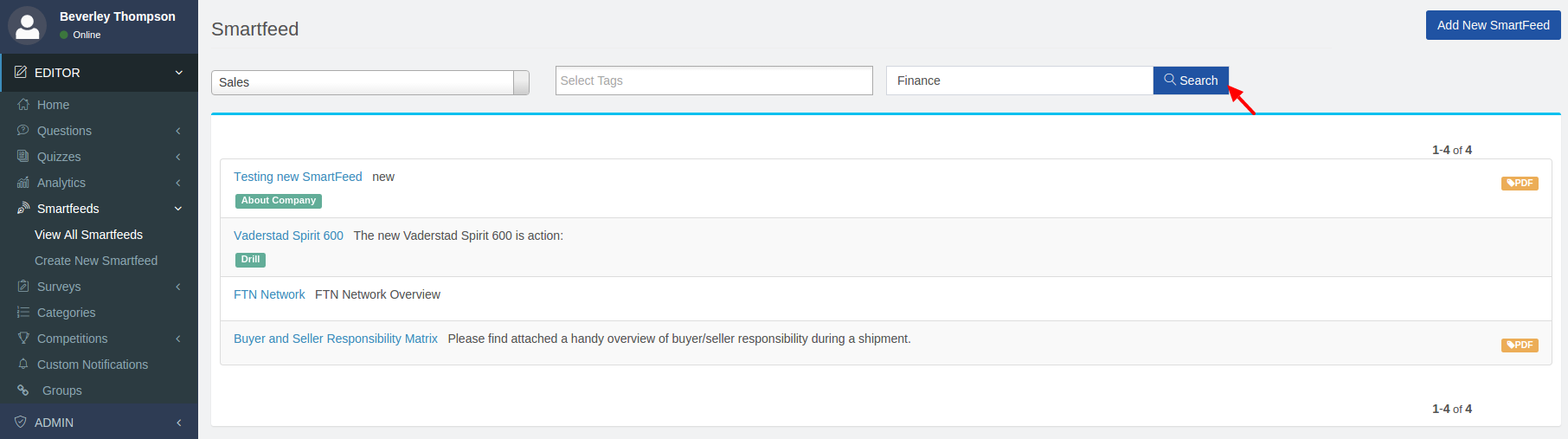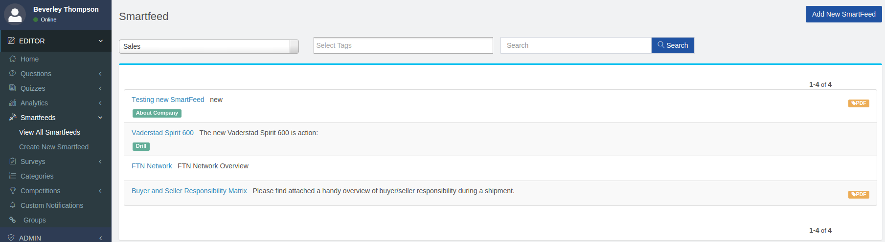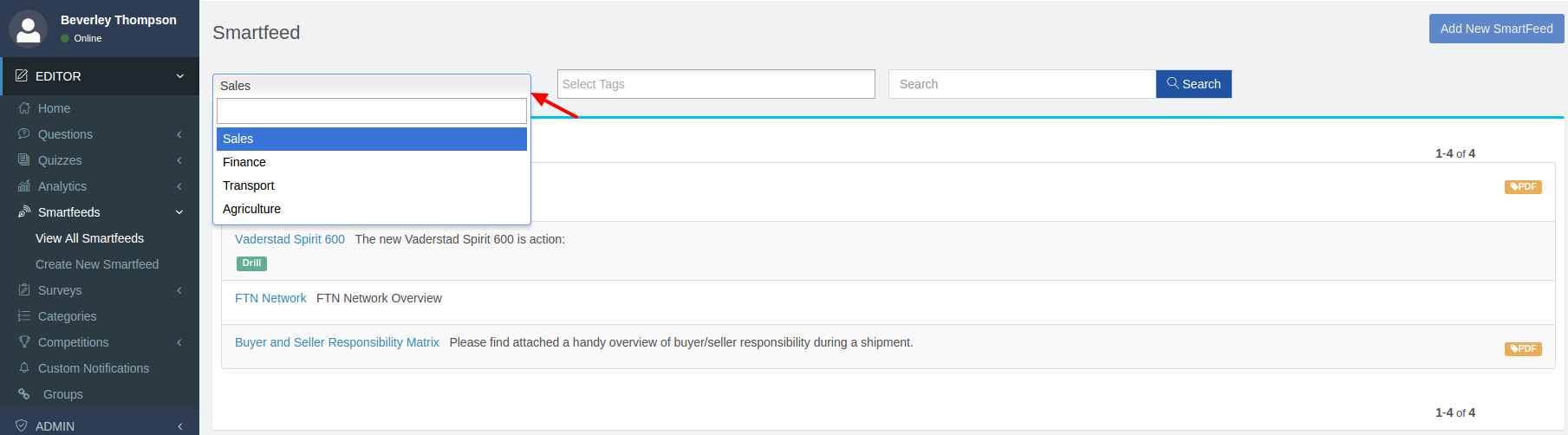 All smartfeeds will be displayed here. you can filter smartfeeds by