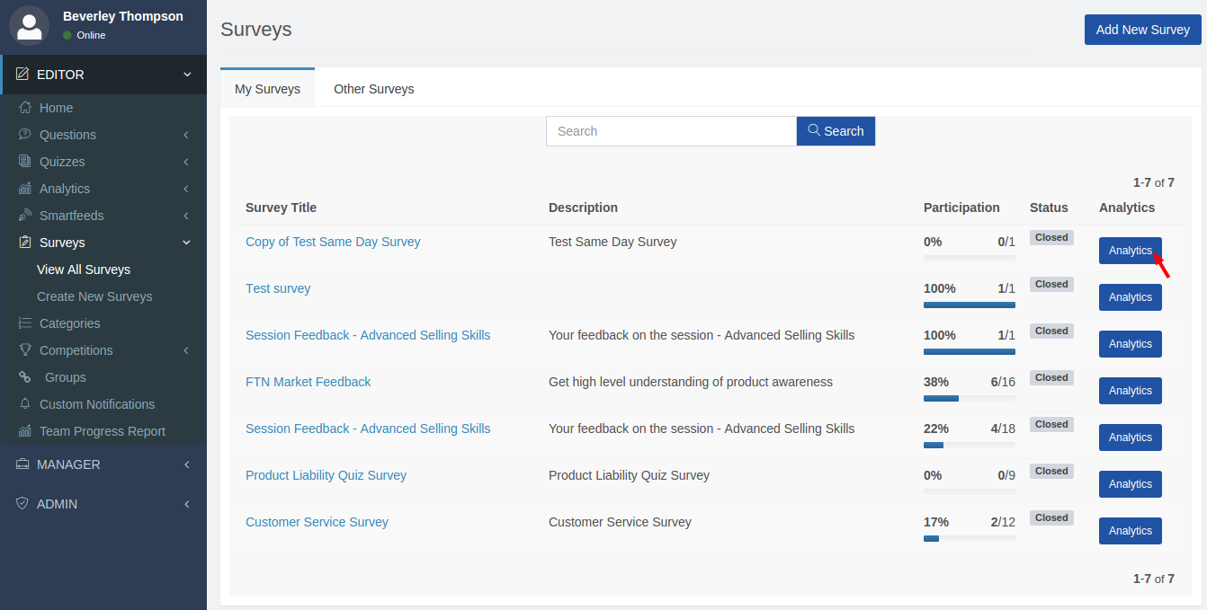Click on Surveys View all Surveys Survey page will open Analytics